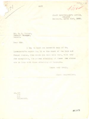 Reporte de Mr. Lanzarroti sobre tiendas en Coya y Pangal, 1930