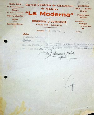 Recibo de barraca de maderas la Moderna – Febrero 1930