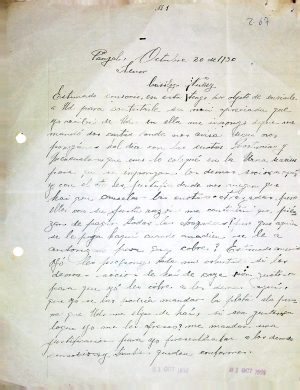 Respuesta a Crisólogo Nuñez de encargado de sección Pangal – octubre 1930