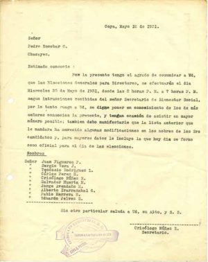 Memorandum por traspaso de cuotas sindicales – Julio de 1931
