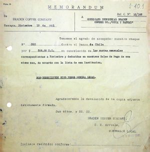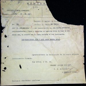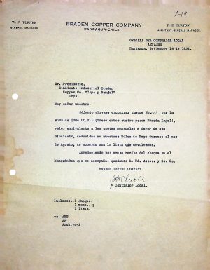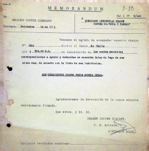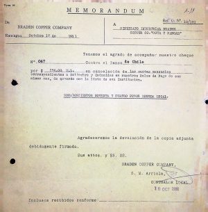 Memorandum de Braden copper, cuotas mensuales septiembre 1931