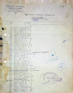 Memorandum por traspaso de cuotas sindicales Noviembre de 1931