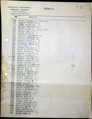 Nomina de sindicados indicando años de servicio a la empresa- Octubre 1928